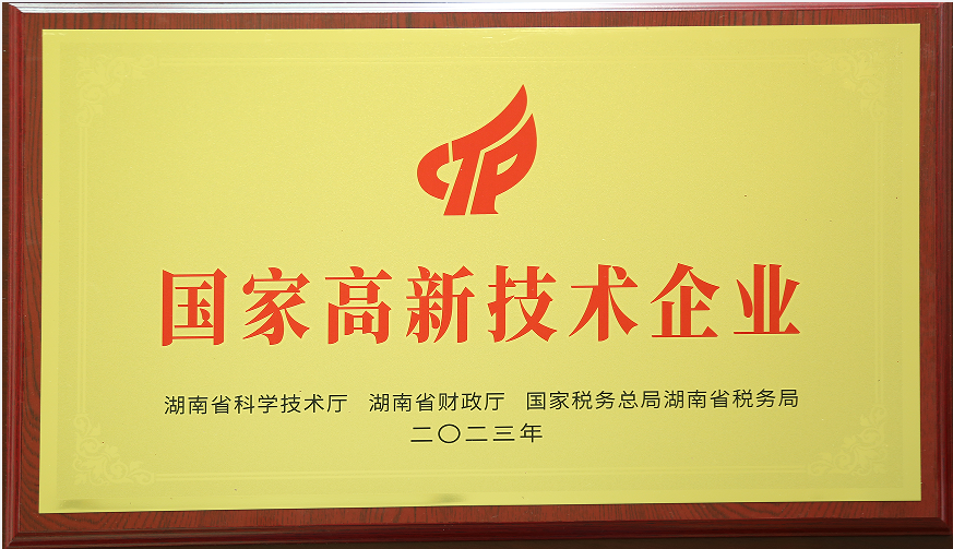 2023年12月被湖南省科學技術廳授予“國家高新技術企業”